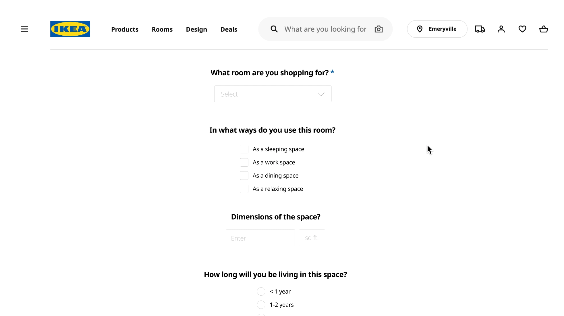 Personalization and customization are strong desire factors for Gen Z. To account for this, users can take a quiz that assesses their shopping motives, living space conditions, and style preferences.